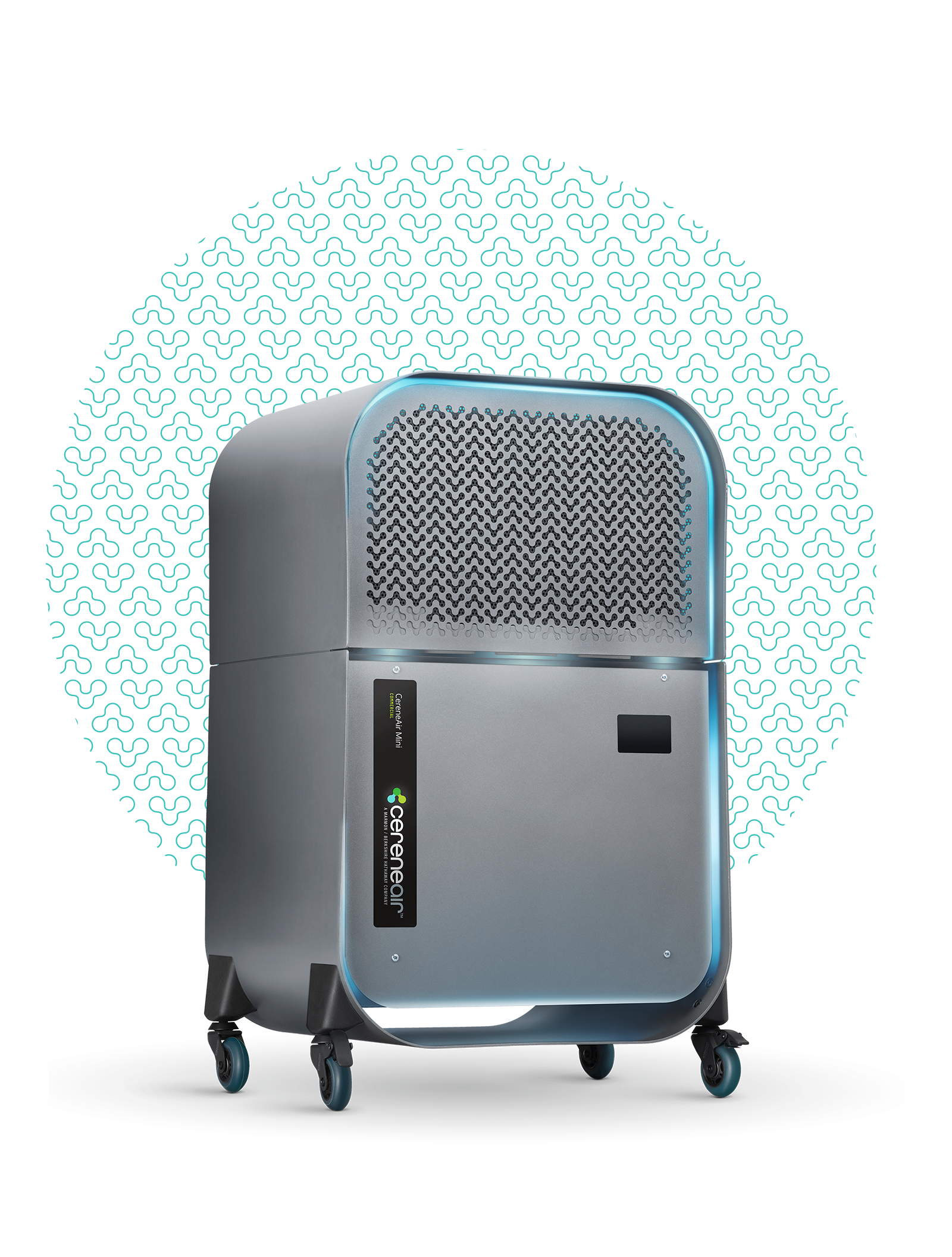 CereneAir’s revolutionary, proprietary, patented technology pulls air into the unit and subjects it to a series of ultraviolet light sources, converting the oxygen (O2) in the air into ozone (O3). The newly created ozone destroys any microorganisms in the air. All ozone is then forced through a proprietary catalyst, which converts the ozone back into oxygen, which is then reintroduced into the room as clean, fresh air. No ozone escapes the unit. In fact, testing proves that ambient ozone in the room is reduced to trace amounts.